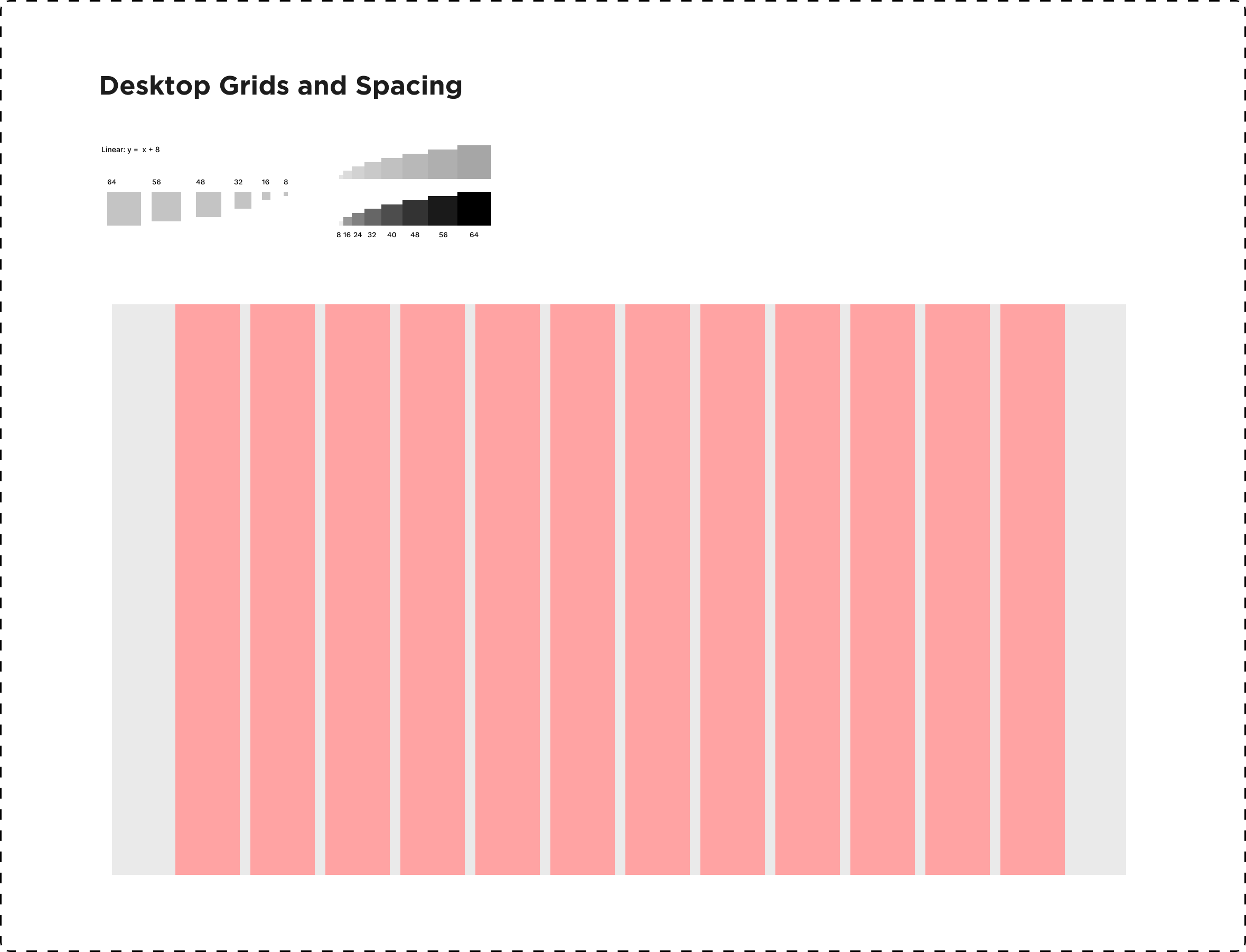 I utilized an 8pt grid system to size and space elements and a 12 column system as I can easily space out elements in 2’s, 3’s, 4’s, and 6’s.