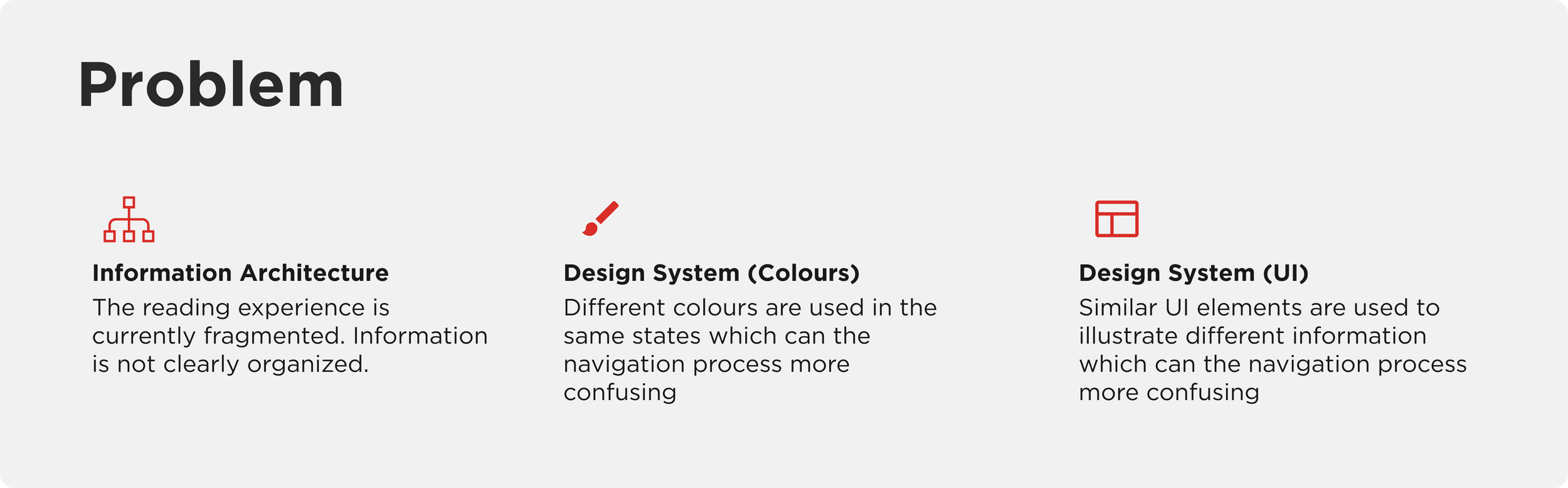 To improve on website readability and ease site navigation, I also helped the client create a design system to ensure consistency on future use-cases. I focused primarily on creating a colour palette in order to utilize the same colours to denote the same actions. I rounded off the design system by ensuring consistency in spacing and type.